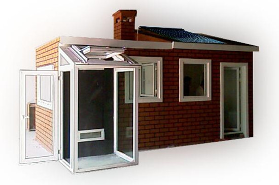 本实验系统主要有两间实验房,用于热工性能对比。平面尺寸均为2500×2400mm,高度约2000mm。其中一间为平顶,一间为坡顶。房间主体结构为钢构,墙体为最新专利节能轻型墙板。主要集中的节能技术有太阳能光电利用、光热利用、地板辐射取暖、LOW-E玻璃、遮光板反光板、太阳房、特郎伯集热墙、导光管、空气流动演示(配烟雾发生器)、自然风模拟风扇组、断桥门窗等最新技术手段,同时还配有独立的采集监测系统。具体组成见系统主要组成表。