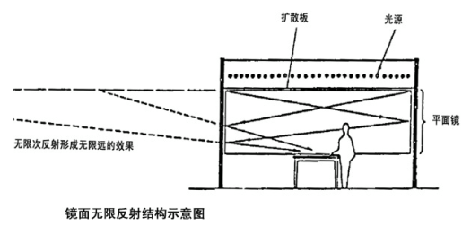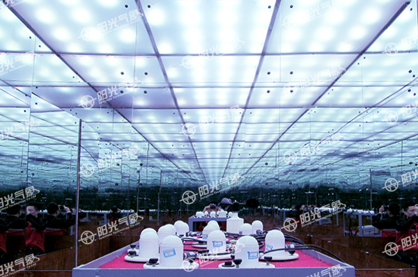 ZYG-IA是平面镜无限反射型人工模拟天穹。这种形式的人工天穹是以均匀布置多组稳定光源的扩散材料作为顶部,以局部或全部相互垂直的平面镜作为四个立面的一个大约3000X3000X2700mm的小型矩形封闭空间,当LED光源点亮时,该封闭空间内的环境即是CIE标准的全阴天状况;由于光线并不是直射光,所以形成的光环境非常稳定且均匀。通过对设计的不断改进及大量实验,我们消除了由人员出入口造成的影响整体反射效果的现象;并在基础的结构上增加适当的安全措施,在保证空间内人员的安全的前提下不影响模拟效果。我们可以在该人工模拟天穹中开展大量的应用性实验而不受外界环境的影响。