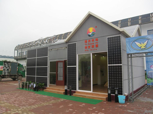 太阳电池组件最小输出功率大于15 Wp;数量:33块,安装于太阳房南墙外表面,装饰与发电一体.