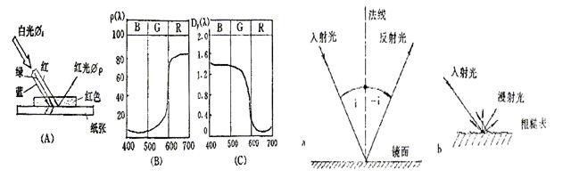 所谓反射是指选择反射,非透明体受到光照射后,由于其表面分子结构差异而形成选择性吸收,从而将可见光谱中某一部分波长的辐射能吸收了,而将剩余的色光反射出来,这种物体称为非透过体或反射体。本仪器就是利用此原理,采用光电转换感应原理,它与多功能数字感应器配接使用,均能精确的测量出不同材料的反射率和不同光源的光谱范围。仪器的感应元件采用了绕线电镀式多接点热点堆,其表面涂有高吸收率的涂层,感应元件的热接点在感应面上,而冷接点位于一起的机体内,以便直接取环境温度。为了防止热接点单方向通过玻璃罩与环境进行热交换影响测量精度,采用了两层玻璃罩。当有光波通过反射片反射过来的时候,接受仪的冷热接点就会产生温差即产生电势值,也就是将光信号转换为电信号输出,在线性误差范围内,输出的信号与光波通过反射片反射出的光照度成正比。光的镜面反射与粗糙面反射示意图如下: