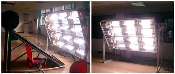 (4)装有四组大功率风机,对发射光源环境进行强制冷却,可对太阳能热水器、集热器、电池板、太阳能发电站等产品进行直接照射。