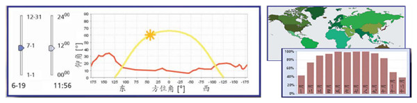 (2)太阳能系统模拟计算统计软件:可以根据被测产品的数据, 模拟其产品在世界各地的应用效果分析图表,并建立产品检测元件库。