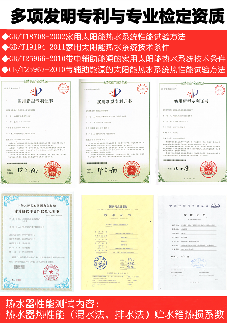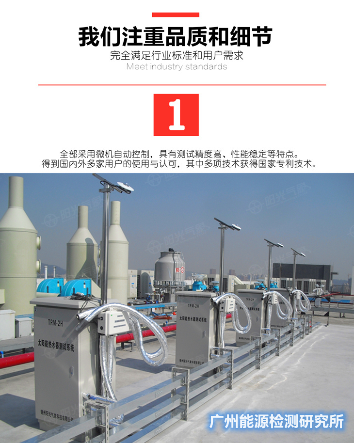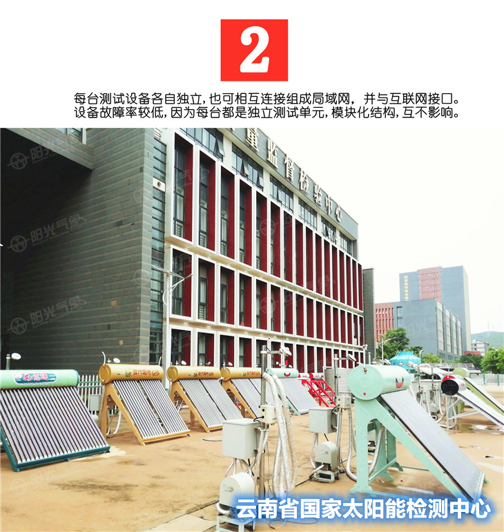 多年来锦州阳光气象科技公司建设了众多太阳能检测中心,均都通过了CNAS认证,得到了认可. 我们根据多年研究太阳能热水器检测设备的经验,结合了检测技术,现推出先进的网络化太阳能测试系统, 可满足广大太阳能热水器生产厂,质检所,检测中心,科研教学等领域的使用。