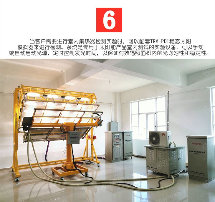 太阳能集热器是决定太阳能热水系统热性能的关键集热部件,对太阳能产品的发展起着决定性的作用。因此对集热器的研究和测试非常重要,我们根据检测标准要求和多年生产太阳能检测设备的经验,推出TRM-BL型太阳能集热器测试系统。该产品全部采用微机自动控制,具有测试精度高、性能稳定等特点,并得到多家用户的使用与认可,是国内先进的太阳能集热器检测设备。广泛应用于太阳能生产厂、太阳能实验室、太阳能检测中心、产品质量检验机构、大中专科研院所等对太阳能研究部门的使用。