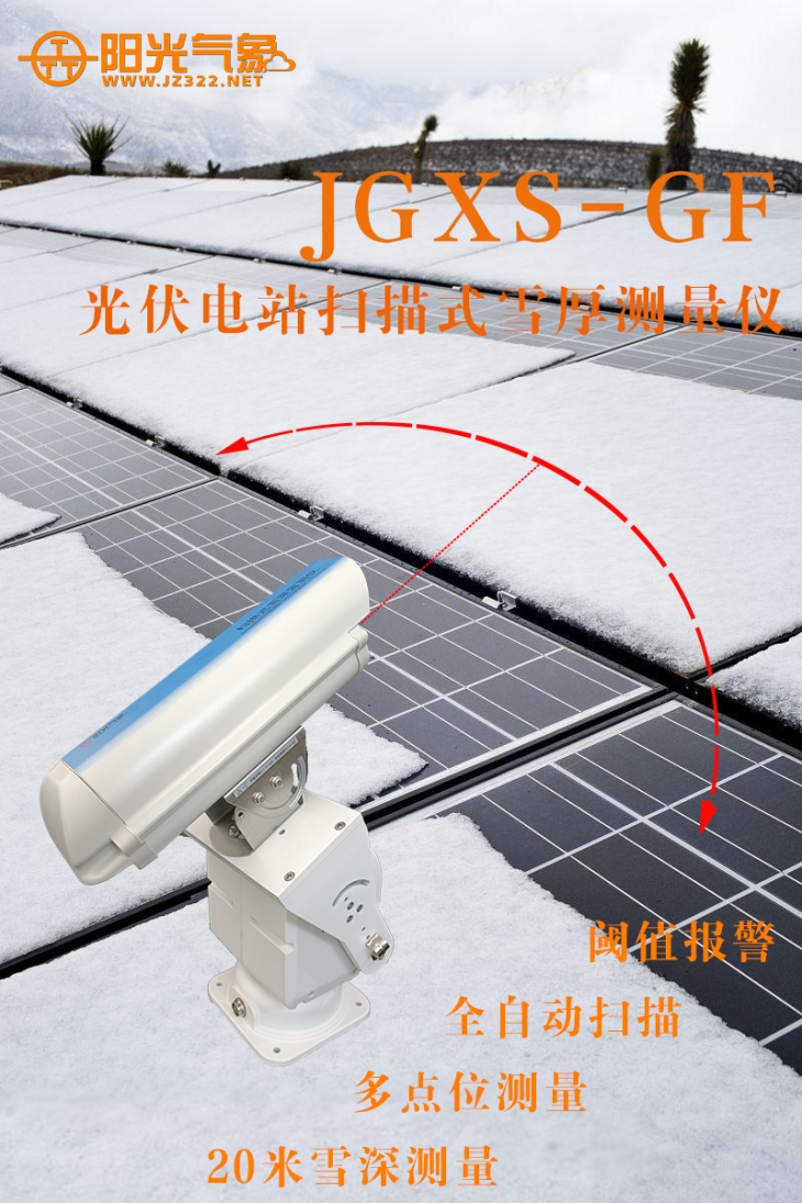 进入冬季,光伏电站如果遇到雪天,光伏板上就会积雪,雪的存在会使太阳光被反射,从而使得光伏板的发电量受到影响。雪重也会增加光伏组件的承重,可能造成光伏组件的变形或损坏,影响光伏组件的寿命和性能。此外,积雪也会使光伏板表面温度下降,从而减缓电流的流动速度,造成电流的输出不稳定。因此,雪天对光伏发电的影响是复杂的,及时准确地监测光伏组件表面的积雪情况是非常必要的。JGXS-GF光伏电站扫描式雪厚测量仪是我公司新研发的一款专门针对光伏电站组件表面积雪厚度进行动态测量的仪器。