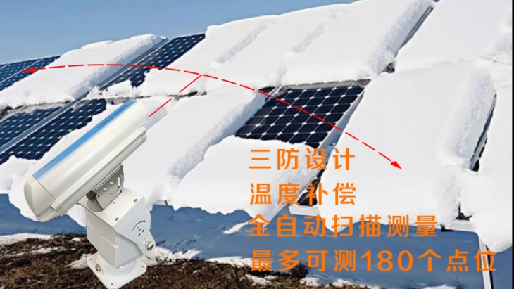 4、水平0~360°,上下0~90°,二维全方位动态自动测量,确保组件倾斜面各个位置的雪厚情况能够得到真实反??;