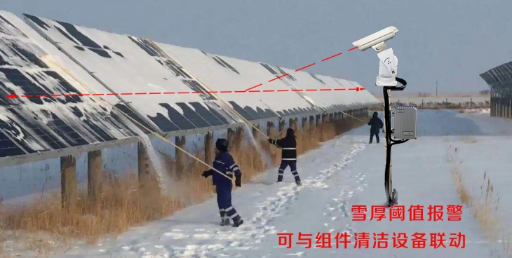 6、可根据需求任意设定雪厚报警阈值,光伏运维人员可根据报警信息第一时间采取除雪行动,以保障光伏电站雪天正常运行;