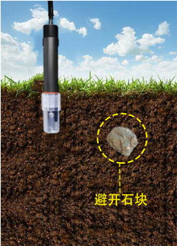 选定合适的测量地点,避开石块,确保探头不会碰到坚硬的物体,按照所需测量深度抛开表层土,保持下面土壤原有的松紧程度,紧握传感器垂直插入土壤,插入时不可左右晃动,一个测点的小范围内建议多次测量求平均值。