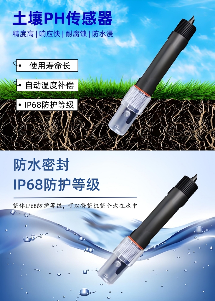 1、新款土壤PH值传感器,真正实现土壤PH在线实时监测;