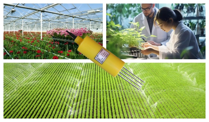 土壤湿度即可单点监测,也可多点梯度监测。测试时需将土壤湿度传感器的探针垂直插入被测土壤的断层,若临时监测也可以直接将传感器垂直插入土壤,但需注意,无论哪种测量方式,都要使探针充分与土壤接触,以保证测试数据的准确性。