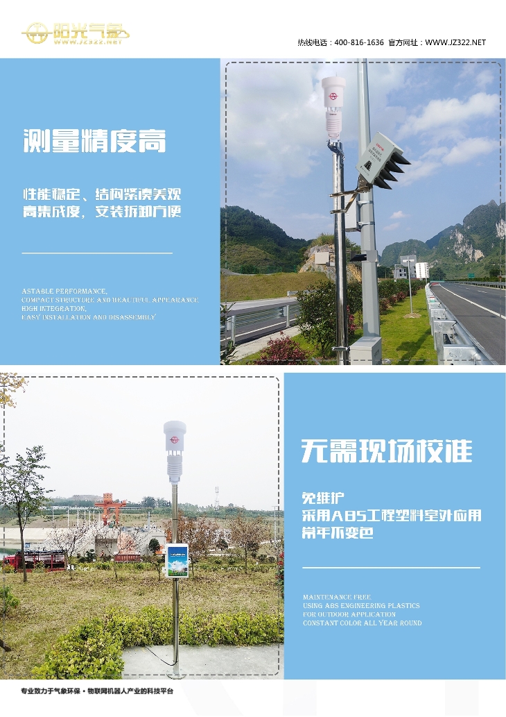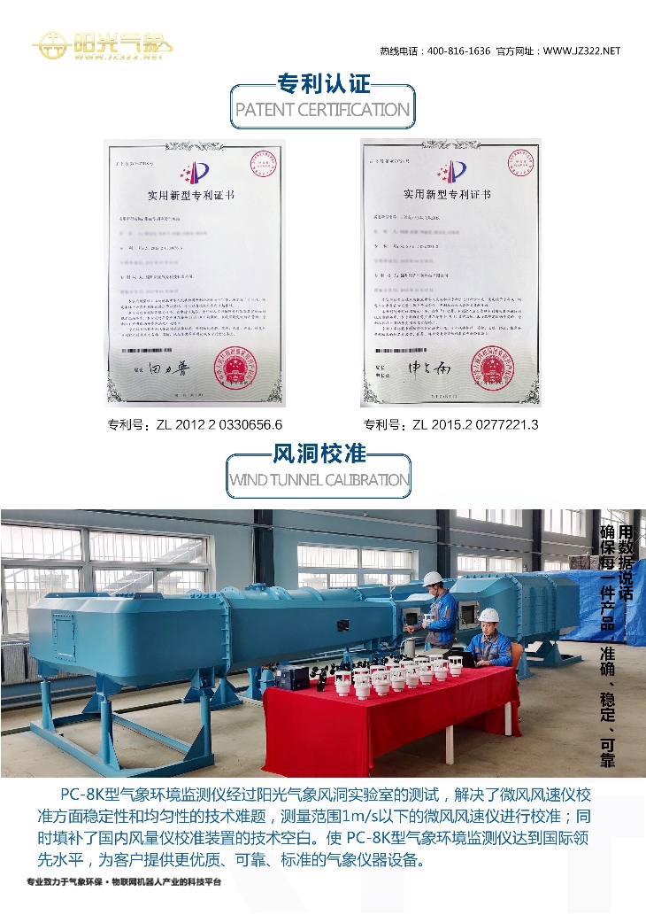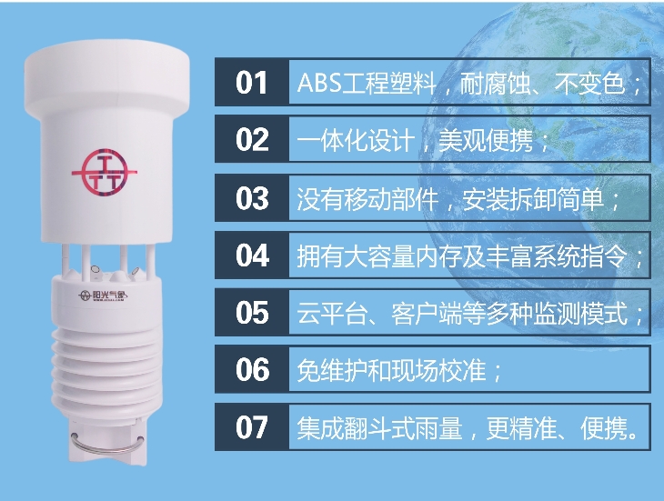 PC-8K气象六参数环境监测仪是我公司自主研制的一款测量多种气象要素的一体化气象站,可同时测量大气温度、大气湿度、风速、风向、气压、雨量等主要气象要素。其中雨量为高精度翻斗式雨量传感器,其特点是精度高,响应速度快,串口输出,方便用户直接通过PC或外接仪器进行采集。