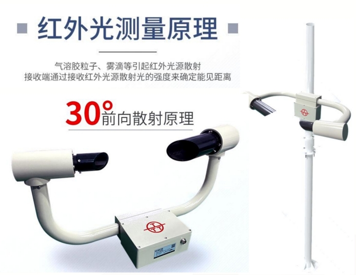 能见度传感器是基于气溶胶前向散射原理而设计的,应用在机场气象监测中,主要保证机场当前大气能见度符合飞机起降要求,为机场交通运行安装提供重要数据保障。