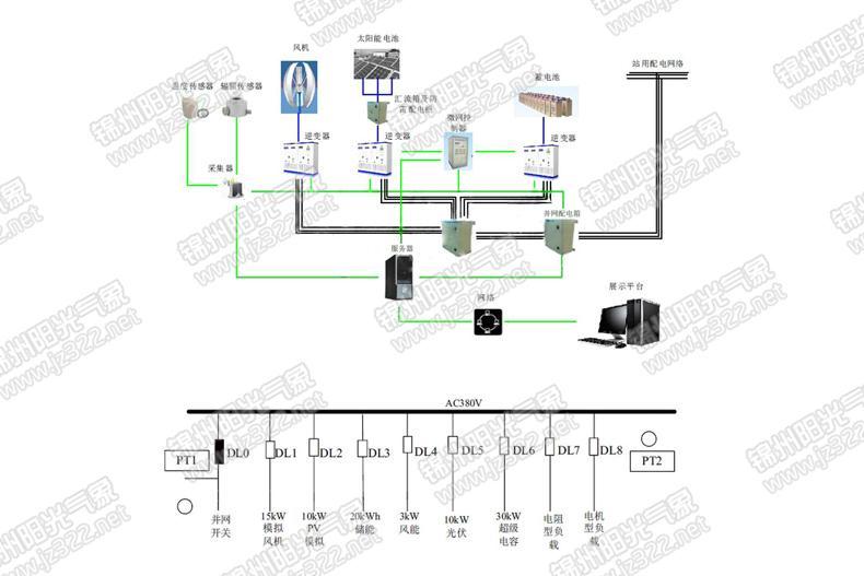 分布式发电系统与微网实验平台包含多种分布式电源和储能设备,具有灵活拓扑结构的微网动态模拟实验系统,作为新能源科研和教学的综合平台;以此平台为基础,可积极开展微网无缝切换技术、微网协调控制与优化运行技术等前沿课题研究,还可作为高校集中展现各种创新性研究成果的展示平台和本科教学、研究生培养、高技术人才培训基地。