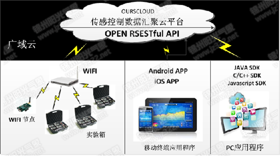 | 广域云 | 基于部署在公有云上的服务接口,学生设备通过HTTP的RESTful API就可以实现广域传感网数据传输,结合我们提供的Android和ISO的APP就可以非常方便地实现远程传感网数据交互。基于云平台我们还可以实现云固件程序下载和云端编程。 |