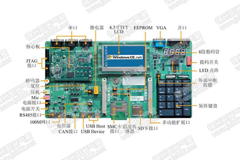 2、具有RS232接口、RS485接口、USB接口、CAN接口、SD卡接口、SMC卡接口、以太网、VGA输出、LED点阵、AC97接口、矩阵键盘。