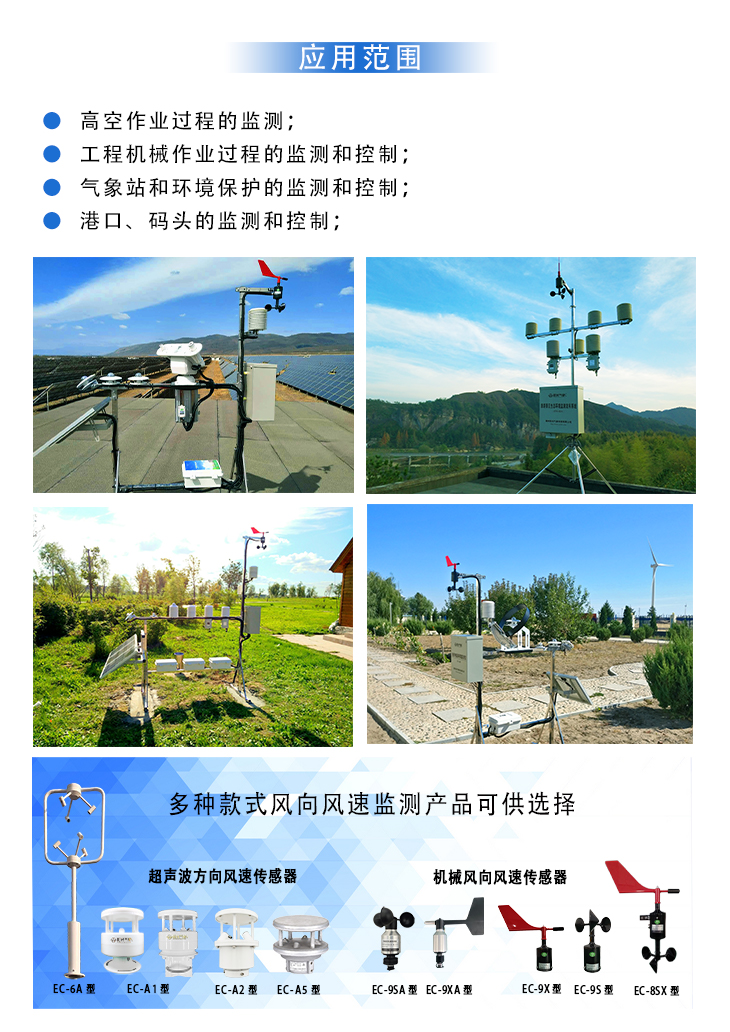 EC-8SX一体化风速风向传感器巧妙完美的将风速传感器和风向传感器结合到了一体,更加方便安装携带,省去了现场布线以及分开安装等繁琐的步骤,此款风速风向仪使用特种模具精密压铸工艺,具有很高的强度,耐候性,防腐蚀,防水性,重量轻,起动扭距小,惯性低等优点??捎糜诠こ袒担ㄆ鹬鼗?、履带吊、门吊、塔吊等)领域,铁路,港口,码头,电厂,气象,索道,环境,温室,养殖,空气调节,节能监控,农业,医疗,洁净空间等领域风速的测量,并输出相应的信号。