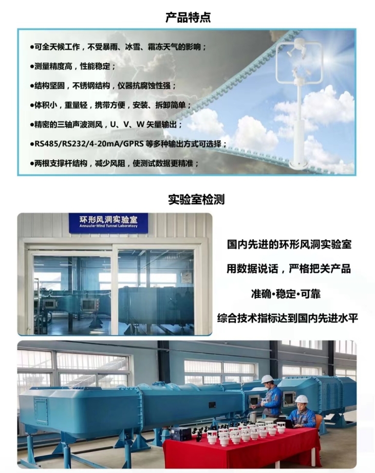 两根支撑杆对比三根支撑杆的优势在于当实际测量风向风速时,减小支撑杆产生的风阻,使测量结果更精确。