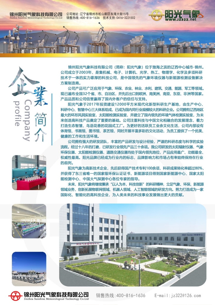 7、系统按室外观测仪器标准设计,采用铝合金材料制造,具有防风,防水,抗腐蚀,耐高低温的特点,适合在野外高原等气候恶劣的环境使用。可靠的三防设计,防护级别达到IP65级,完善的防雷击、抗干扰等保护措施。